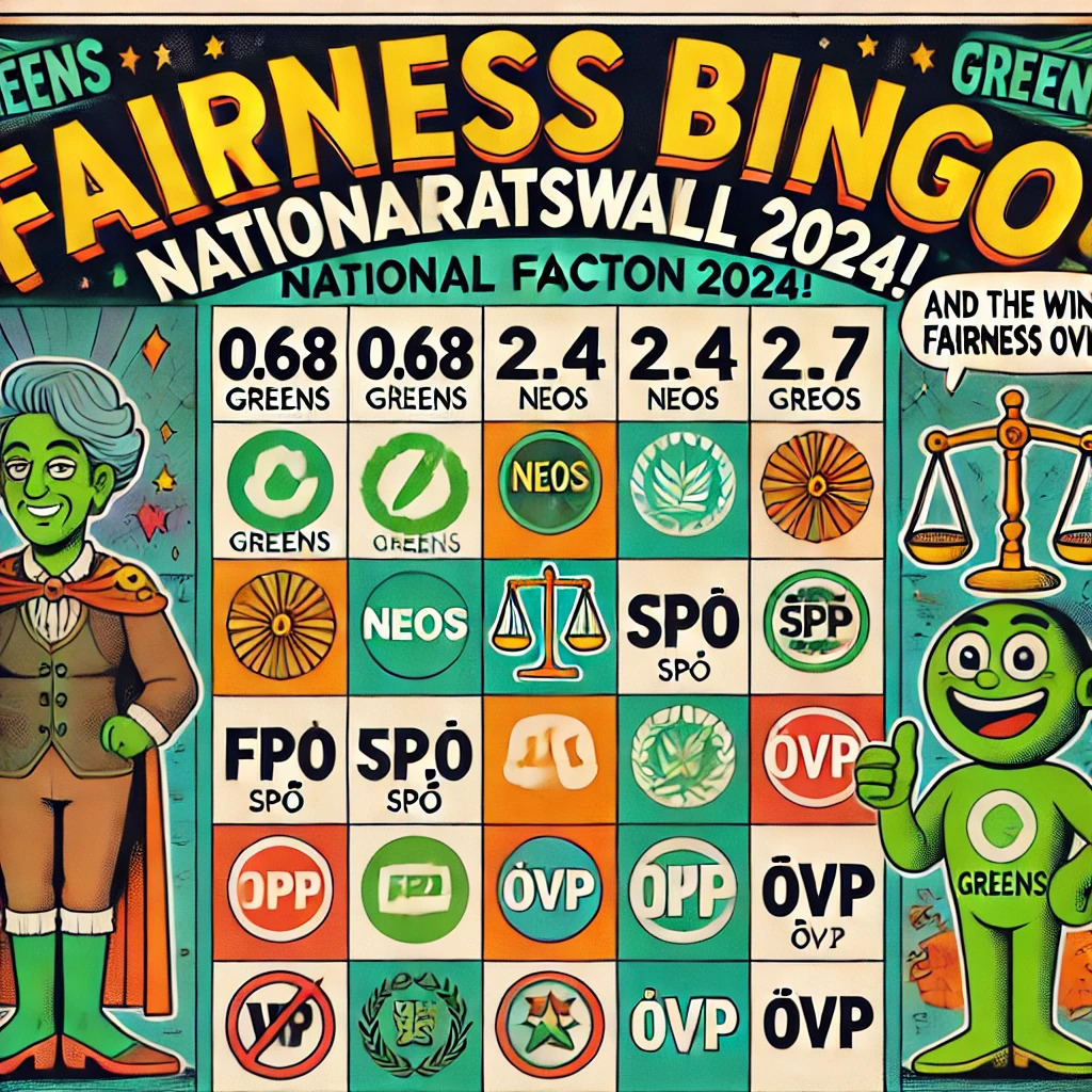 Aber zuerst zum faktischen Fairness-Bingo: Eine Analyse der Wahlprogramme. Dabei handelt es sich um eine Erhebung, die sich auf die Wahlprogramme der Parteien konzentriert und dabei gezielt untersucht, wie oft der Begriff „Fairness“ oder wortverwandte Ausdrücke wie „gerecht“, „gleichberechtigt“ oder „sozial ausgewogen“ verwendet werden. And the Winner ist… 🥁 (Trommelwirbel) – Die Grünen! – sie haben den Fairness-Jackpot geknackt und verpacken „Gerechtigkeit“ ganze 165 Mal in 112 Seiten, das sind beachtliche 0,68 Begriffe pro Seite!